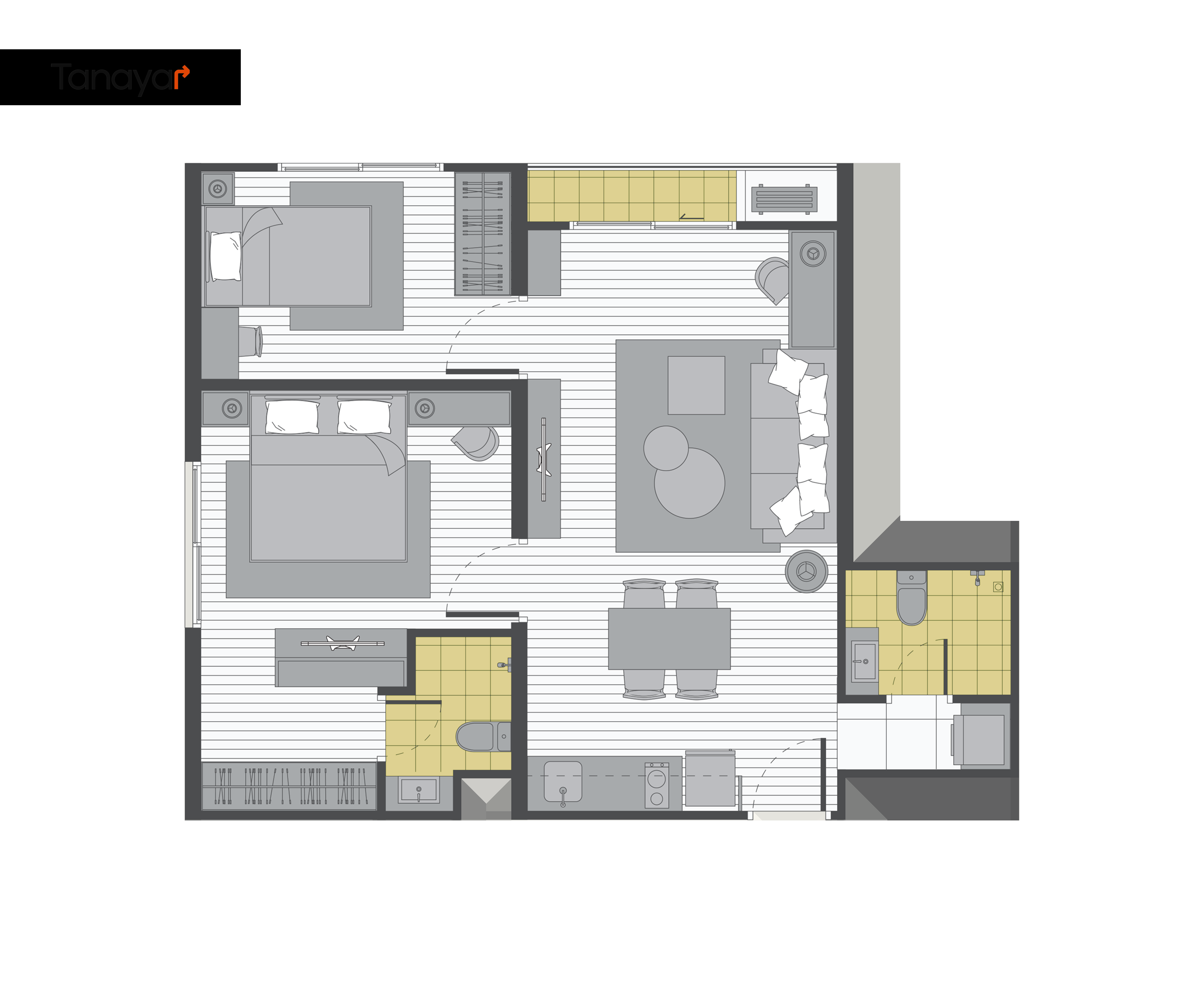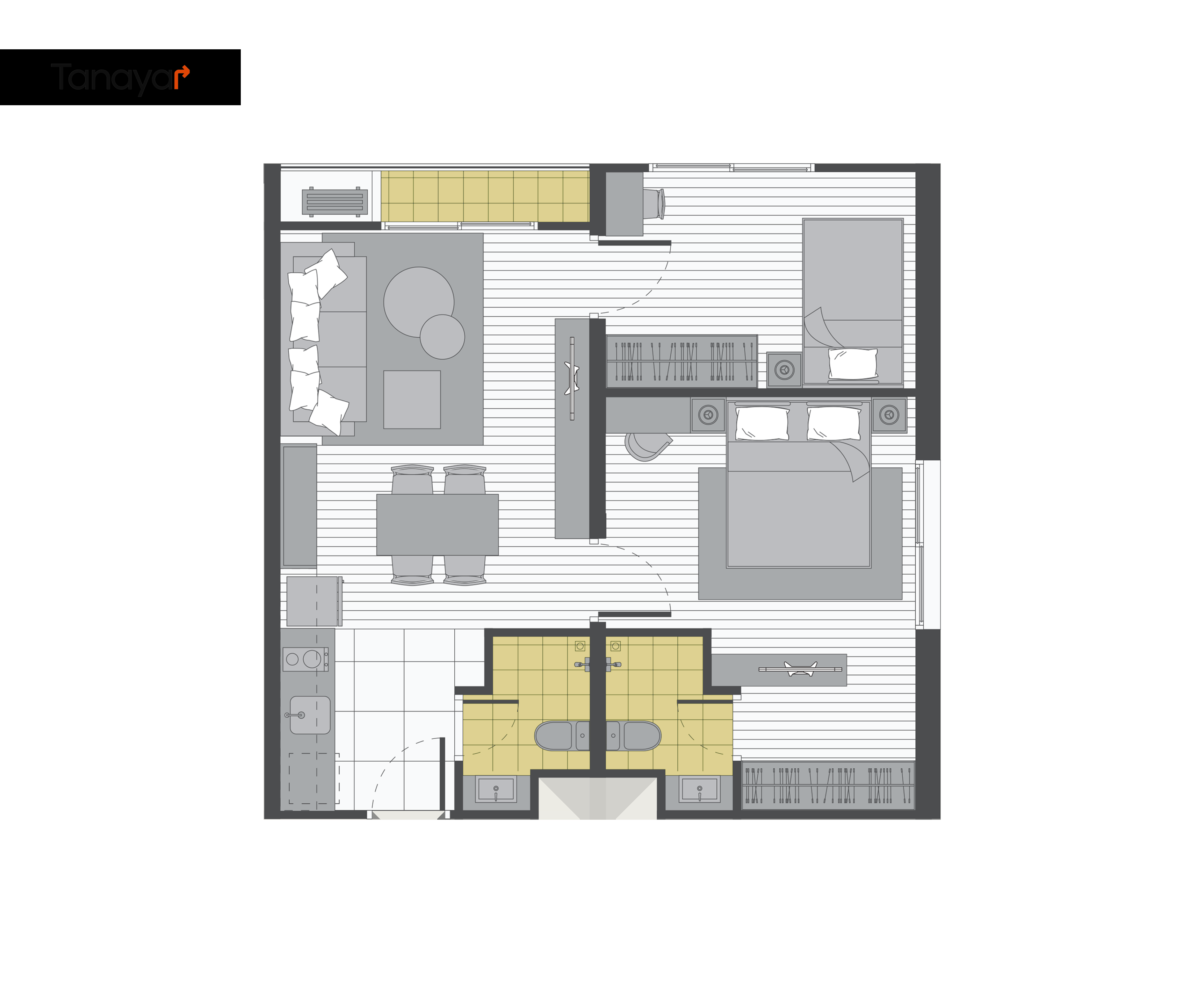 Unit Type BA : 2-Bedroom 56.32 SQ.M.