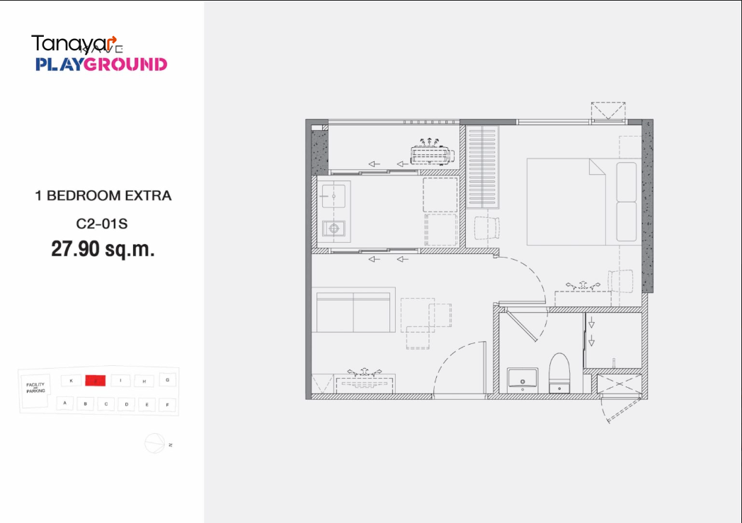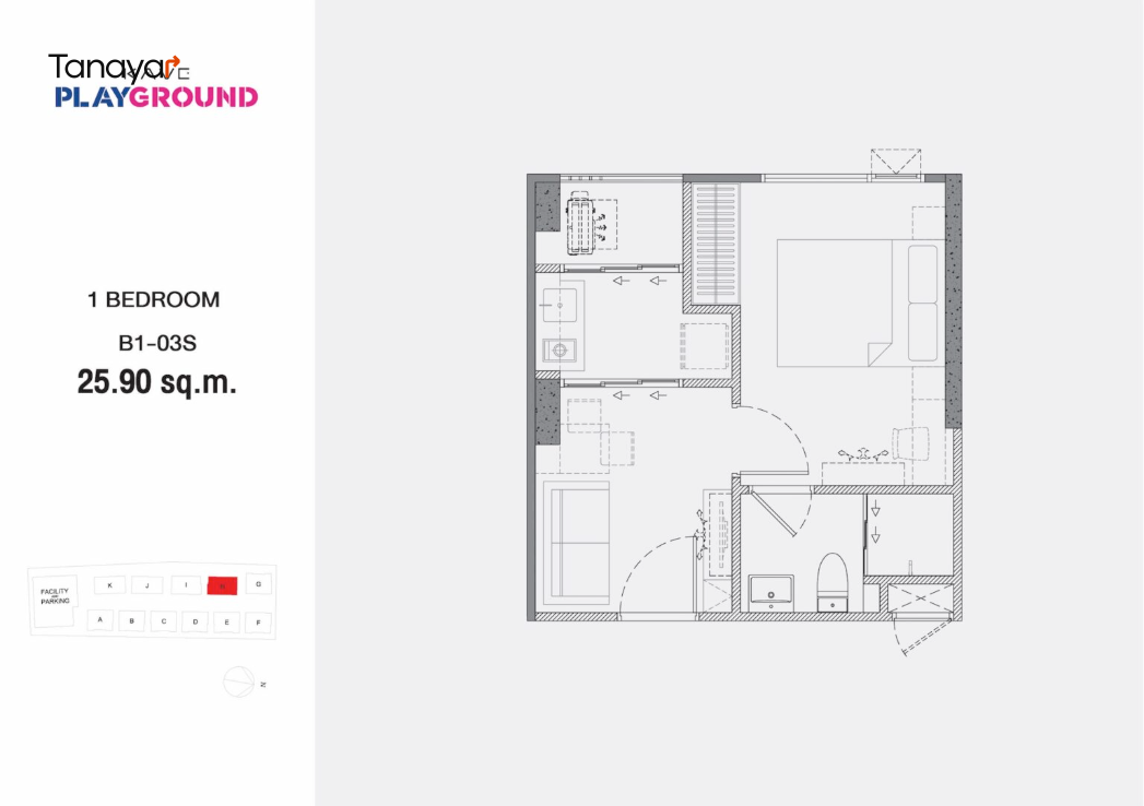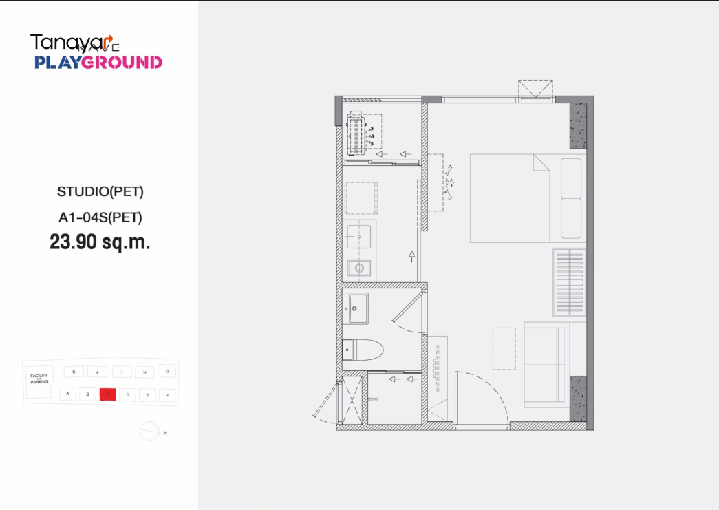 - Studio Room: 21.40 – 23.90 sqm