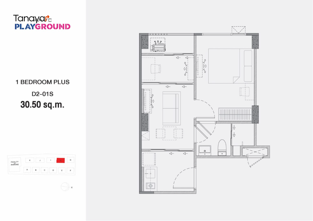 - 1 Bedroom Extra: 26.80 – 30.32 sqm