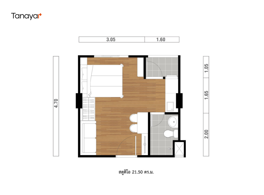 Studio – 21.5 sq m