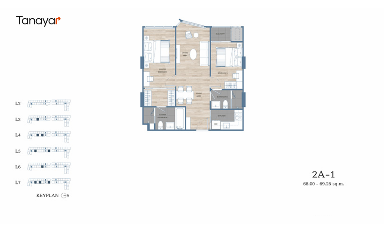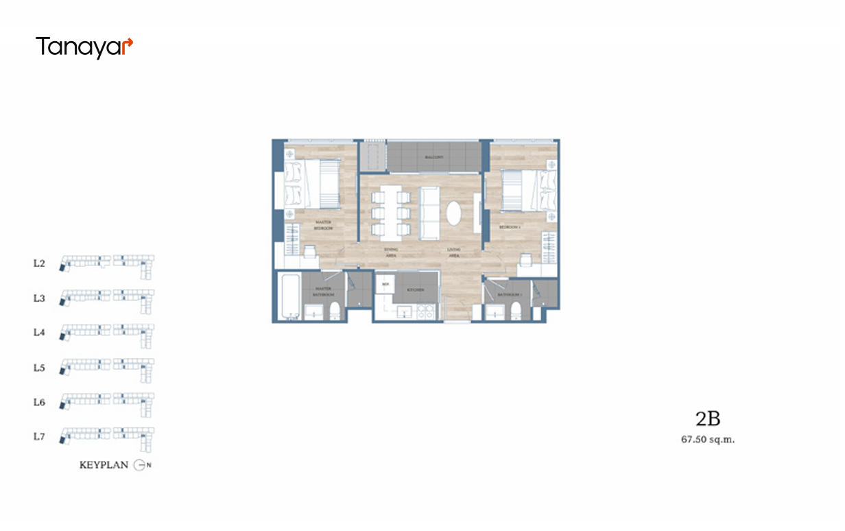 - 2 Bedrooms & 2 Bathrooms: 67.00 – 73.00 sqm