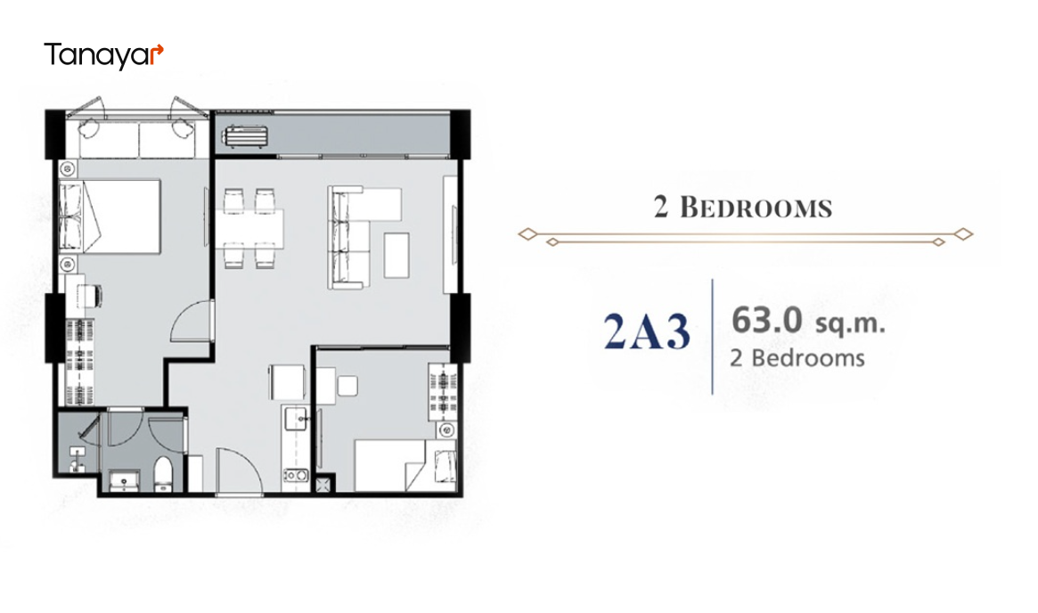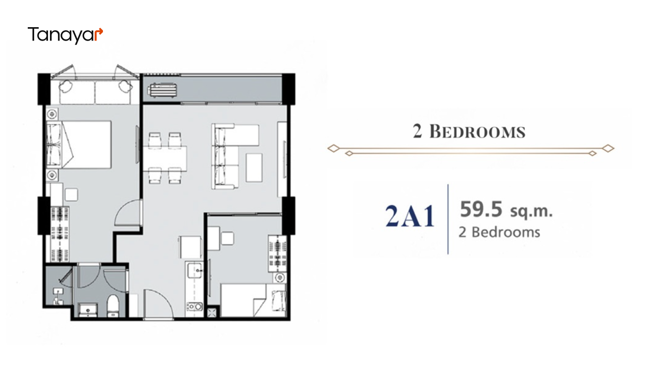 - 2 Bedroom: 59.50, 60.50, 63.00, 72.50 sqm