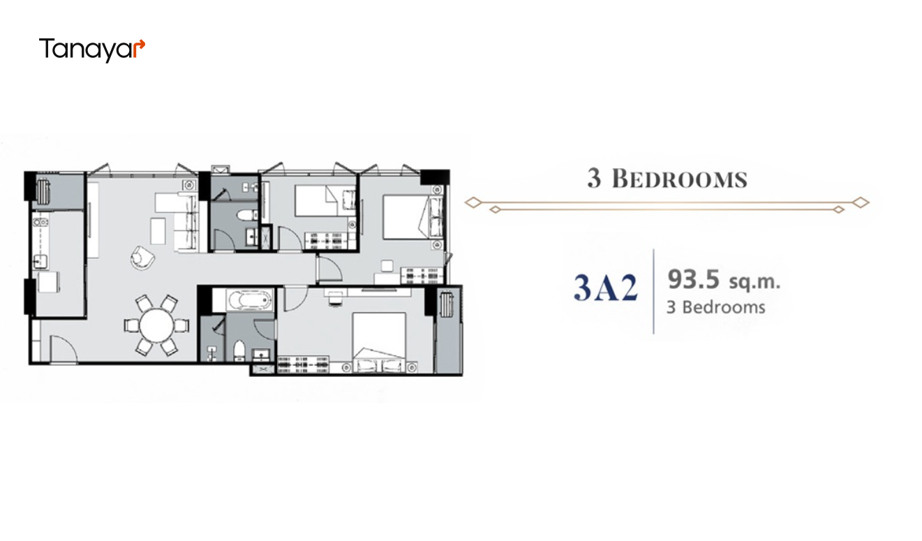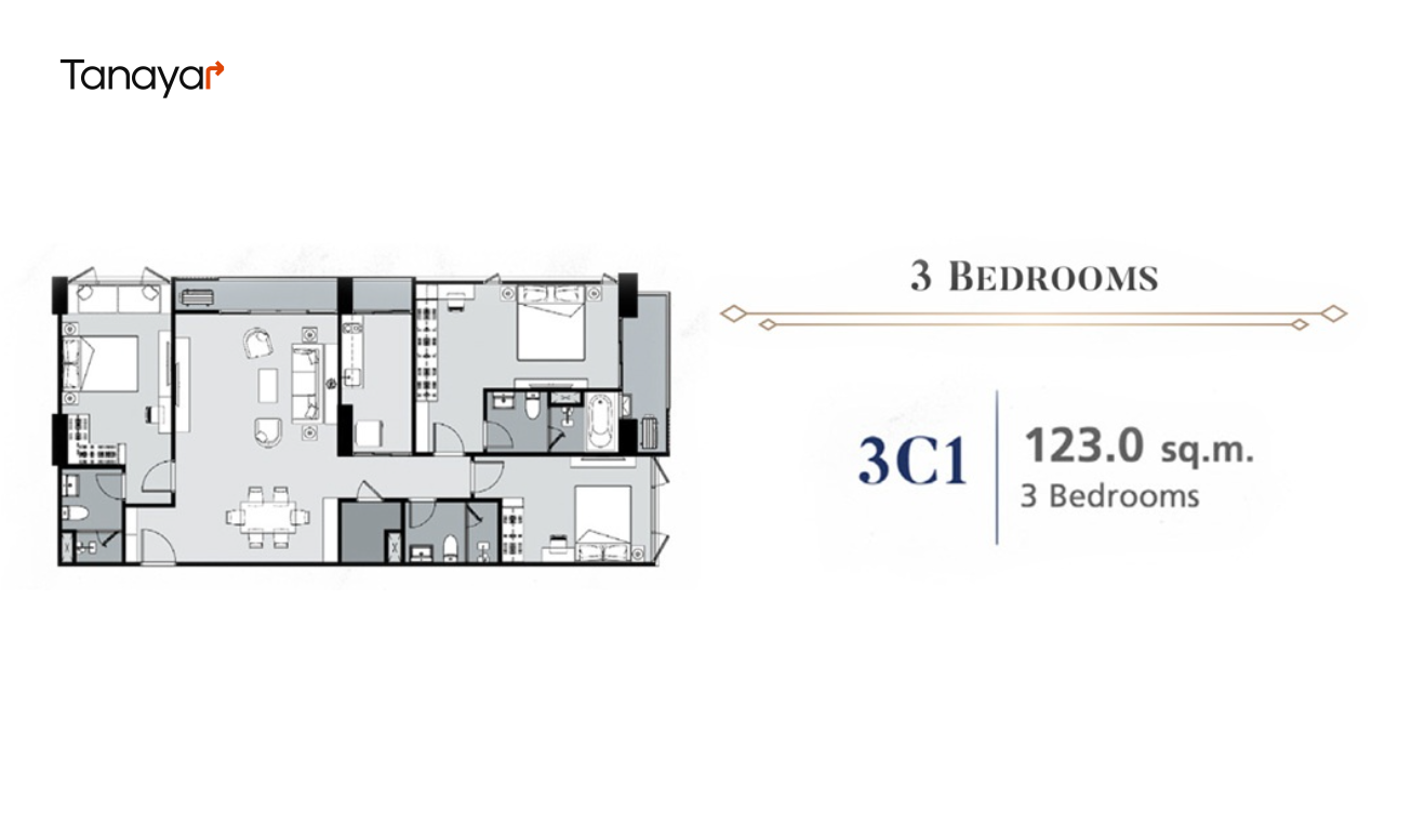 - 3 Bedroom: 92.50, 93.50, 95.00, 123.00, 123.50 sqm