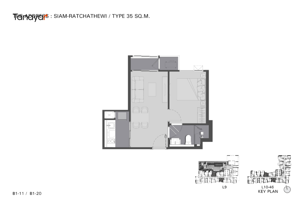 1 Bedroom: 31.00 – 35.00 sqm