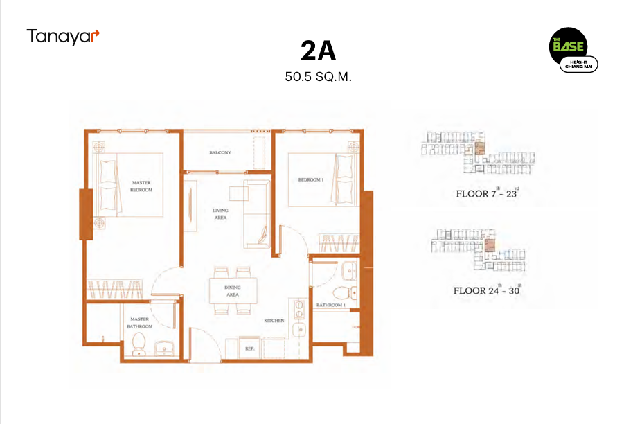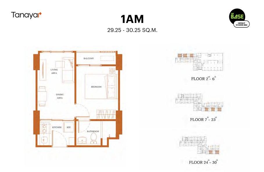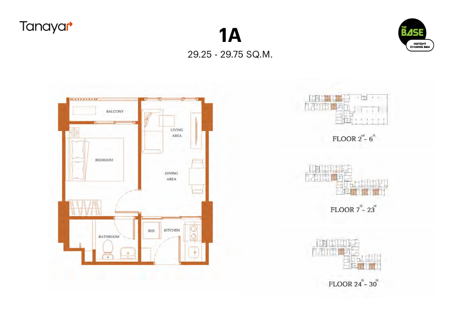 - 1 Bedroom & 1 Bathroom: 29.25 – 30.25 sqm