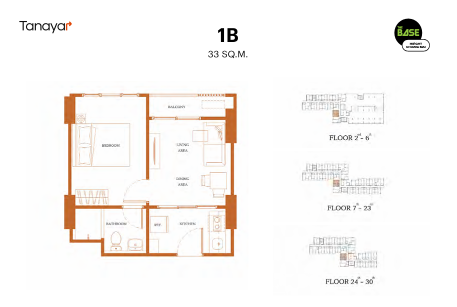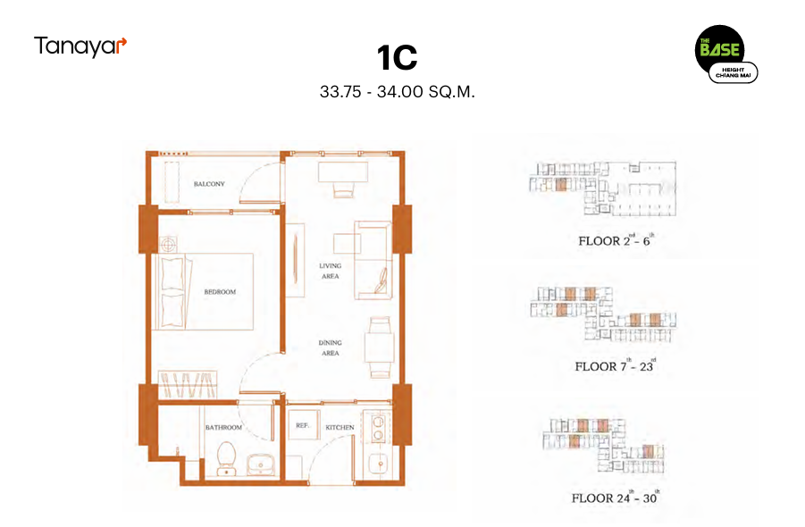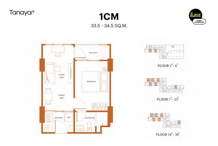 - 1 Bedroom & 1 Bathroom: 33.00 – 34.50 sqm