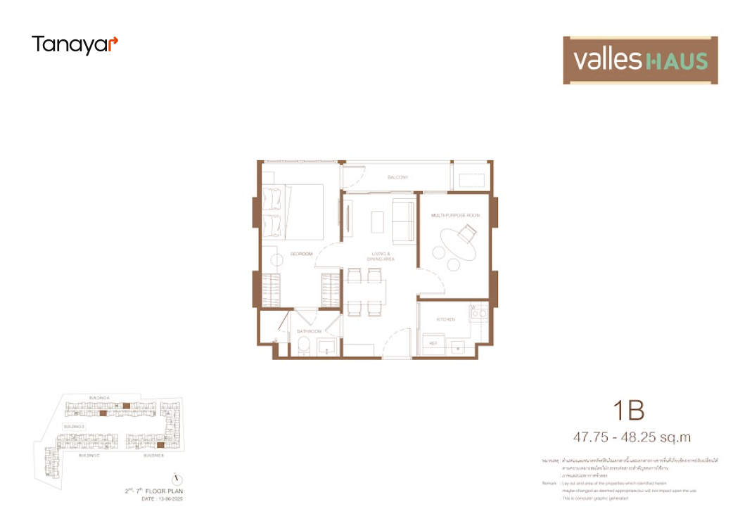 • Sinking Funds550 Baht per sqm (A one-time contribution to the reverse fund for major building repairs and long-term maintenance)