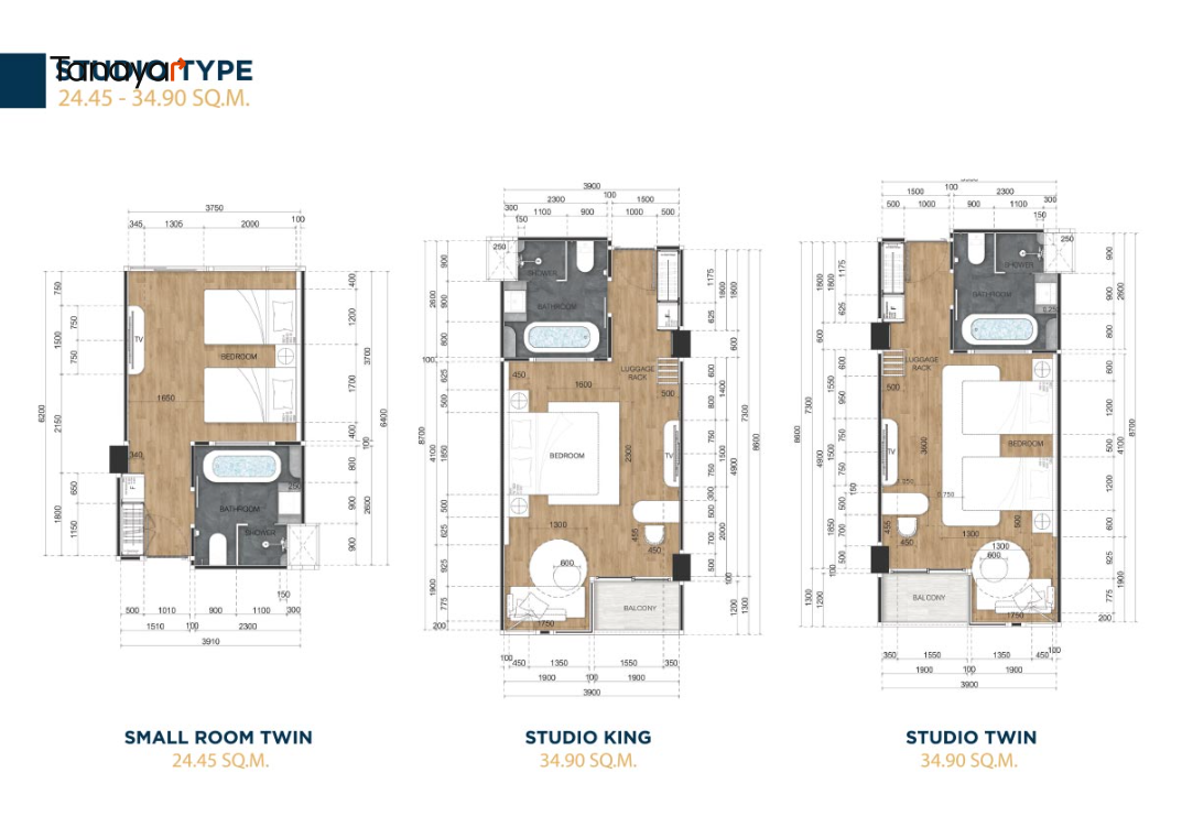 - Studio types: 24.45 – 34.9 sqm